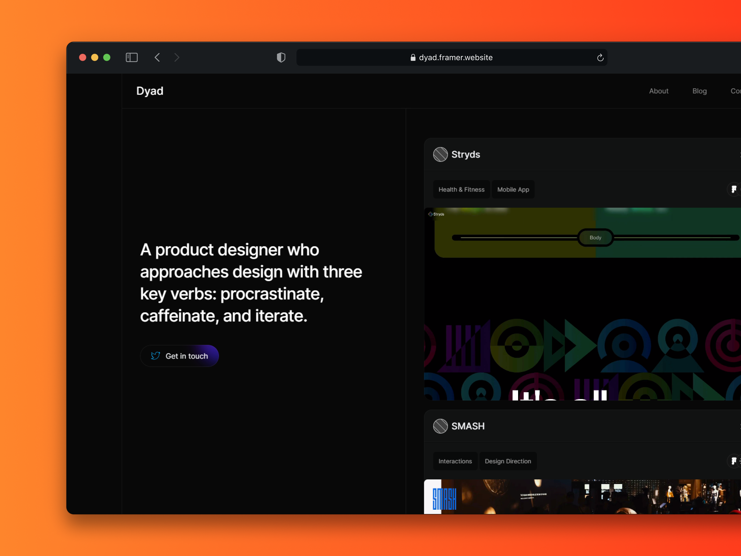 With Dyad, your design portfolio will look better than ever. Check it out live https://dyad.framer.website/