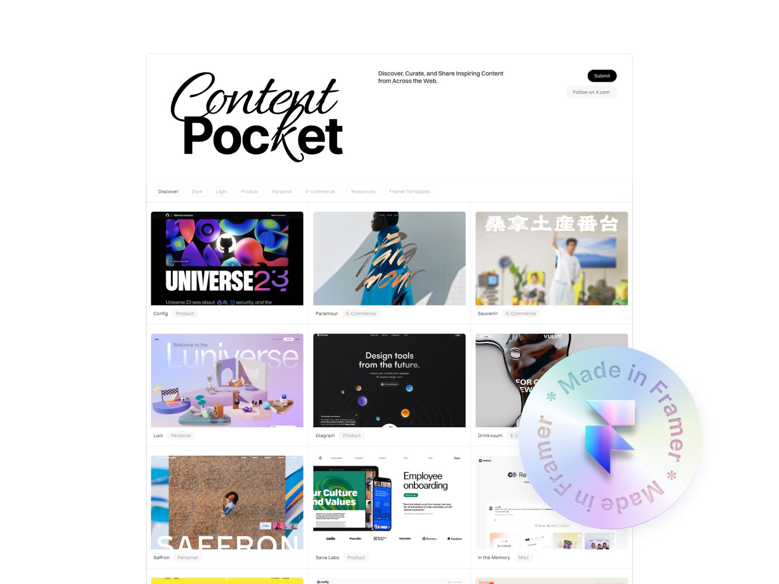 Content Pocket offers an easy-to-customize platform, providing curators a head start to get started quickly. Its clean design and intuitive interface ensure the best experience for curators and their audiences, allowing for seamless content curation and presentation. Preview -> https://contentpocket.framer.website/